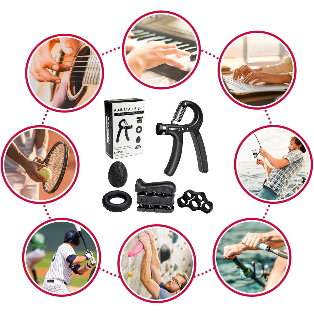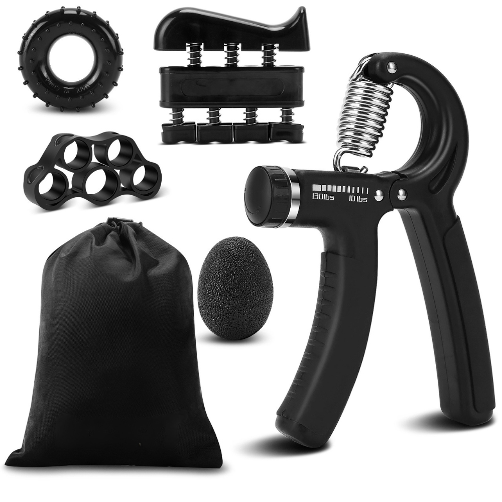 This kit includes a grip trainer, finger exerciser, grip ring, stress ball, and finger stretcher—everything you need for full-range hand, finger, and forearm training.
