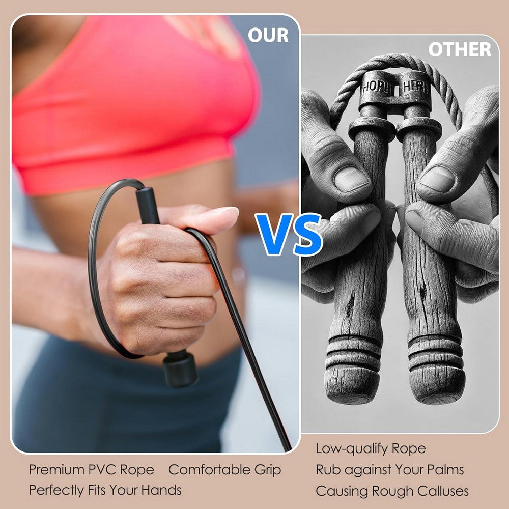 The rope is crafted from premium PVC, designed to resist wear and tear. It’s lightweight yet durable, and the non-slip ergonomic handles ensure a comfortable, secure grip.