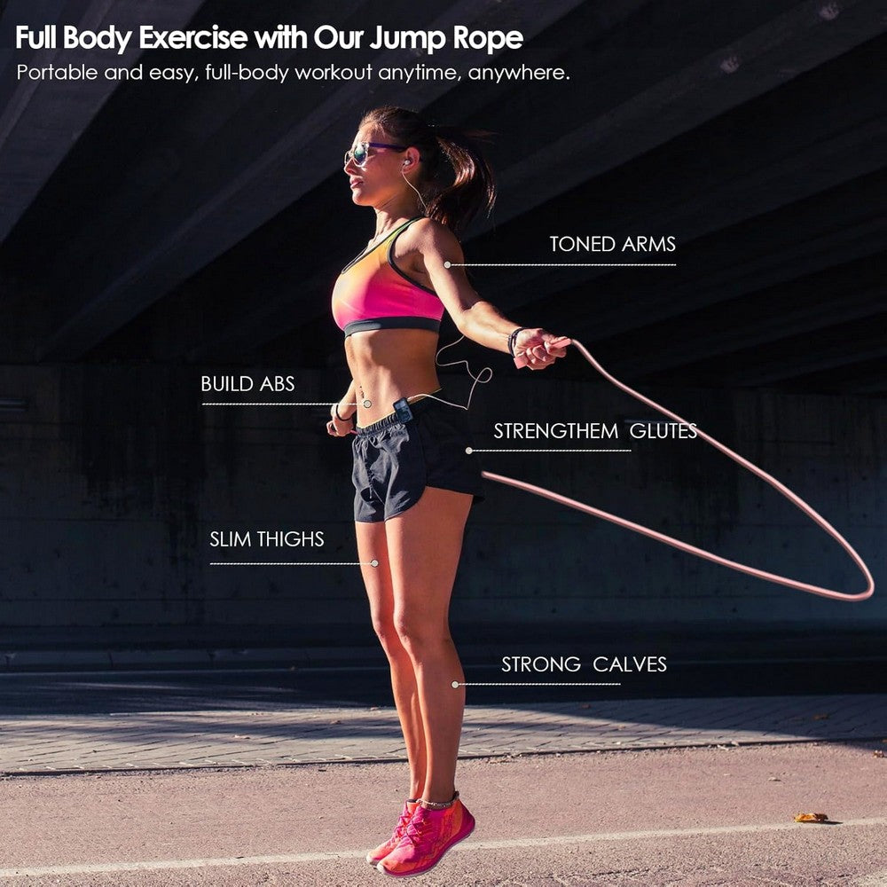 Achieve toned arms, sculpted abs, slim thighs, and powerful calves anywhere with simple, effective jump rope training.