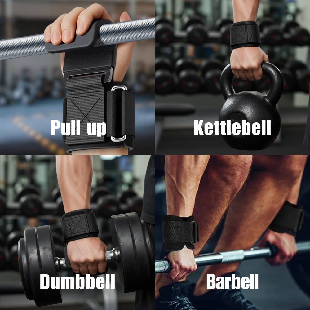 Weight lifting hooks are designed to improve grip strength and reduce strain on your hands and forearms during heavy lifts. They are especially helpful for pull ups, deadlifts, rows, and other strength training exercises.