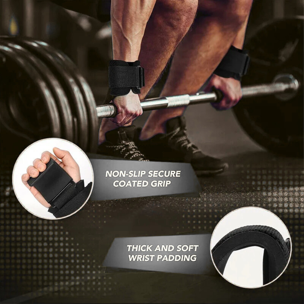 1 Pair of Weight Lifting Hooks Wrist Straps (Left + Right)